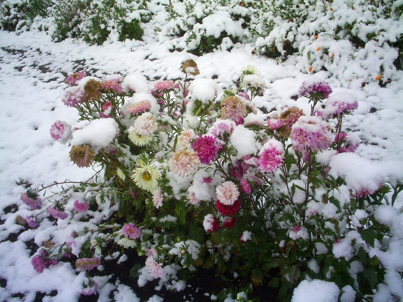Замерзающий куст хризантемы