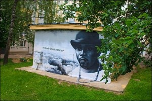 Вот, во дворах есть разные технические сооружения, будки, так называемые, вот несколько примеров нового веяния граффити, допустим:
