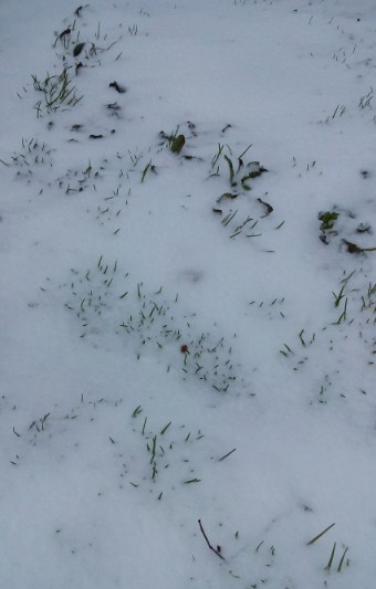И не то, что выпал и коснувшись земли стаял, а выпал и лежал белыми, кристальными айсбергами-островками на полузелёной траве.