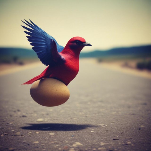 На встречу два шли человека. Меж ими чудо- птица мчалась. Крыла два маха и исчезла. Встреч кинулись бежать те люди, крича друг другу разное о диве; и тут заметили в ногах яйцо. Решив не ждать «что выйдет из яйца?» а осмотреть его изнутри, яйцо разбили… да, на дорогу уронив, разлили. Беднягам стало жаль яйца: они его могли хотя бы просто скушать; а по земле разлитое яйцо, пусть даже от обычной птицы, пусть на утоптанной дороге,.. не просто взять. Те люди бросились спасти желток; да в суете столкнувшизь лбами, лишь окончательно размяли.