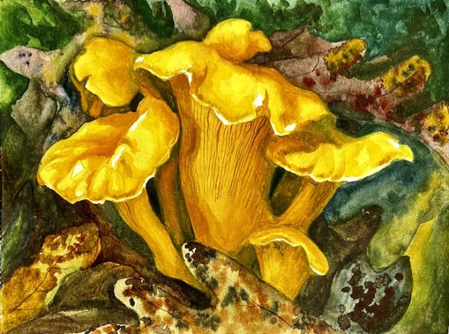 На фото работа автора. Лисички. Бумага, акварель. 21х28 см. 2022 г.