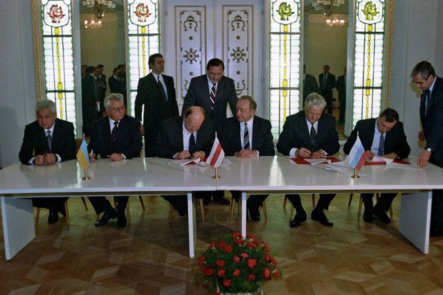 Конечно, тема беловежского соглашения о создании СНГ битая-перебитая, тыщу раз о ней говорилось и писалось. Однако для конкретного понимания метафорических корней сегодняшних потоков человеческой крови нужно к ним обратиться уже в тыщу первый раз. Один из покойных беловежских подписантов господин Л.М.Кравчук как минимум однажды публично признал, что в белорусских советских Вискулях им и двумя его сотоварищами был совершён государственный переворот. Как ни странно, но ему никто тогда не возражал. А ведь действительно, никакого госпереворота беловежские подписанты 8 декабря 1991 года не совершили.