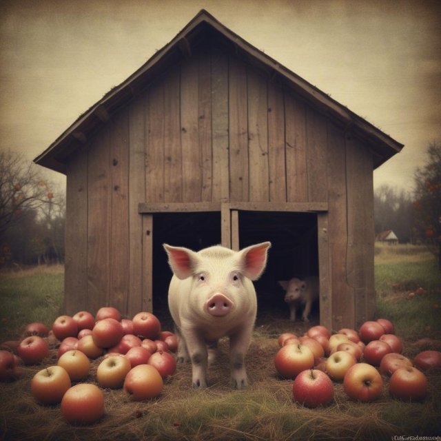 Зачем ты меня в блуд вводишь? - откуда у королей поросята? да ещё и в яблоках... Мне, татарину, конечно трудно судить о поросячьей кухне, однако... А вот прикинь: родилась ты и не Вальжерой, а царь-птицей! - курочкой т.е. Такая красавица! при короне, при серьгах! а по тебе, коль меньше 8 шт. за десять дней, топорик плачет. А ты и знать не знаешь: кудахчешь себе, веселишься, зёрнышки клюёшь... Вишь? - королева! при кокошнике! и? какие тебе к лешему поросята в красных яблоках?