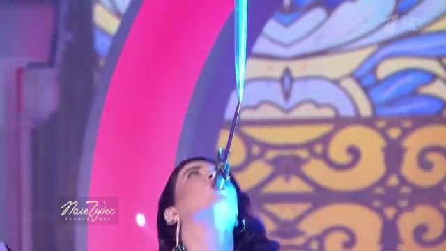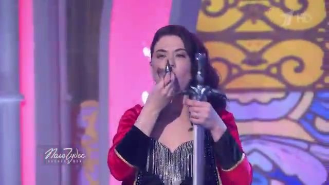 Но вот удержать ещё и розу поднятыми вверх руками, придерживая стебель у лезвия оружия, силу надо поболее иметь. Разумеется, если бы с таким номером шоумен выступал в Одессе в цирковом балагане в начале XIX века, то его могли бы посетители, заплатившие деньги за вход в надежде увидеть чудо, и избить за примитивизм искусства. Однако сейчас на ТВ, в родной студии, зрители рады и тому, что видят. Главное, чтобы цветок ровно (красиво) стоял!..