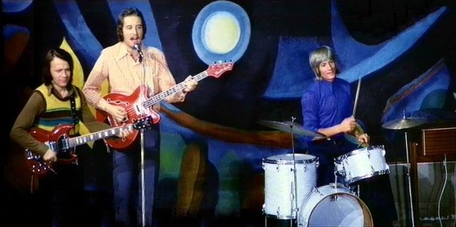 А это первый исполнитель песни на русском языке Александр Лерман в составе ВИА "Весёлые ребята" (с электрогитарой в центре фотоснимка). Весёлый!..