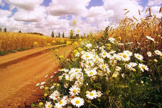 Заросли поздней ромашки ветер колышет волнами,